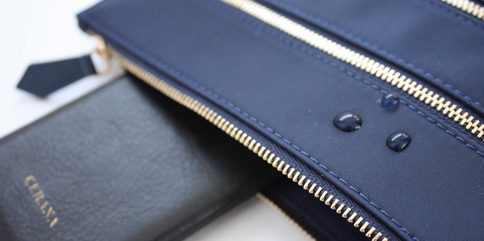 Materials- Exterior - Luxe water-resistant nylon and environmentally certified leather details